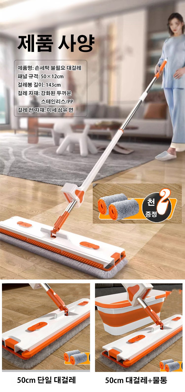 【2분 120평】다기능 50cm 연장 대걸레